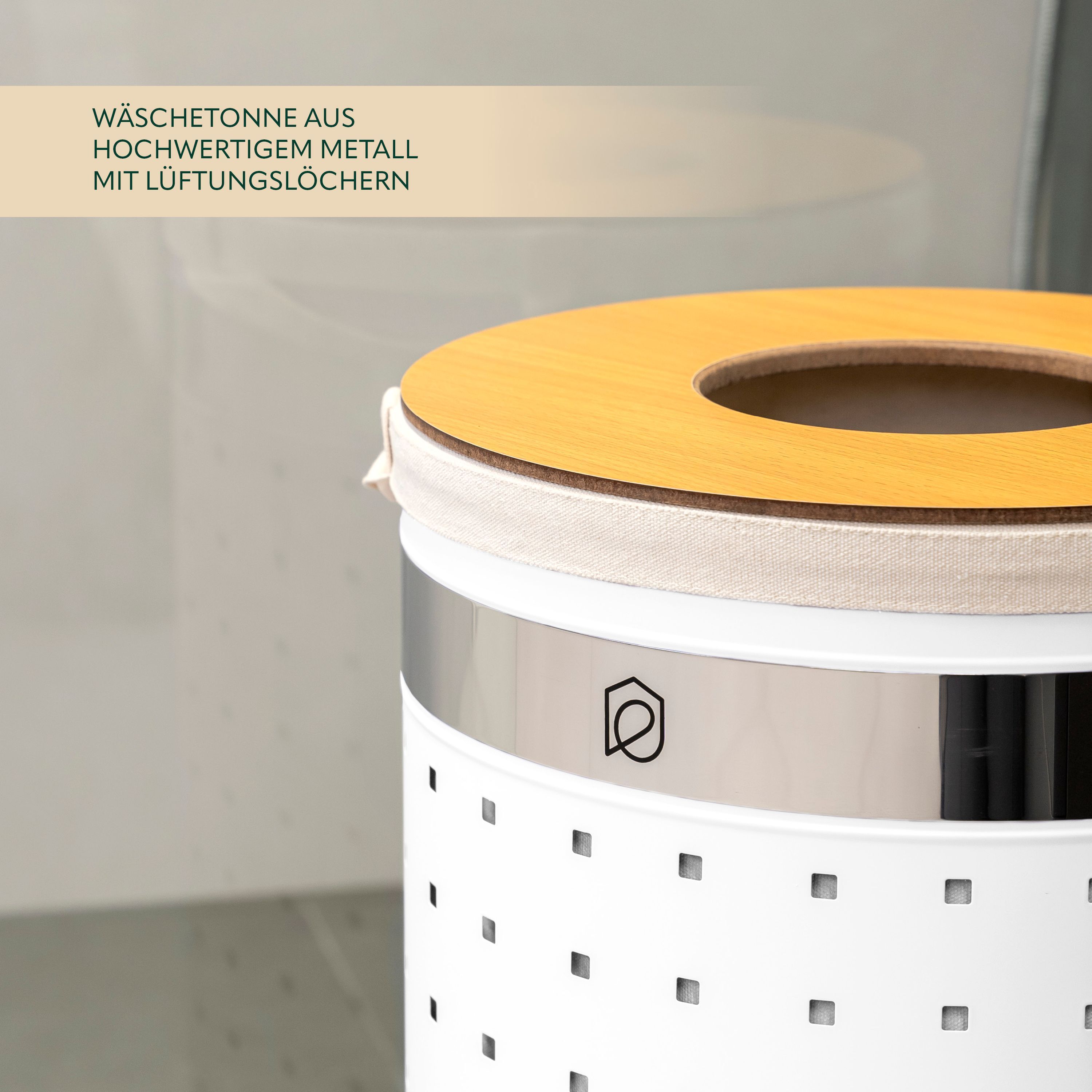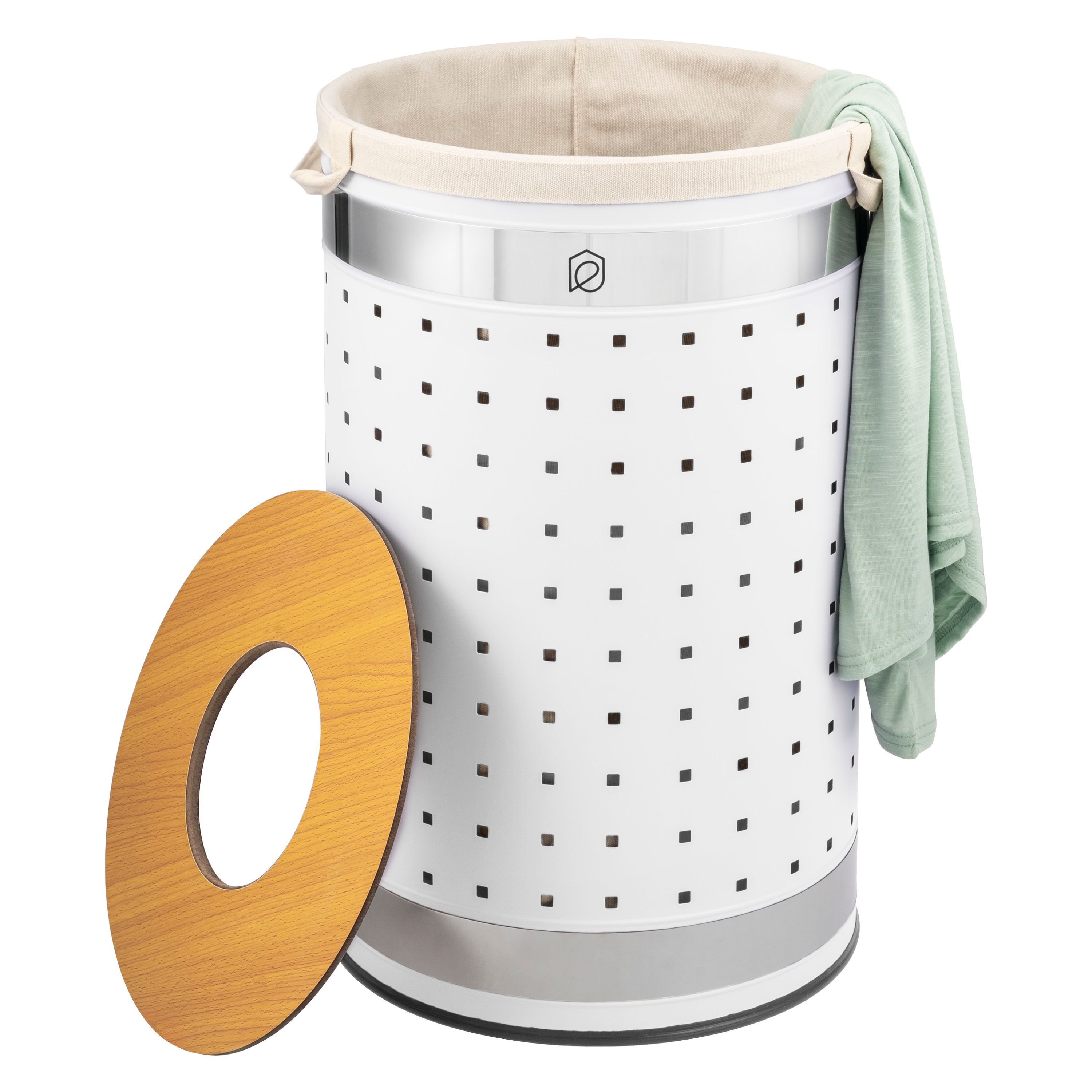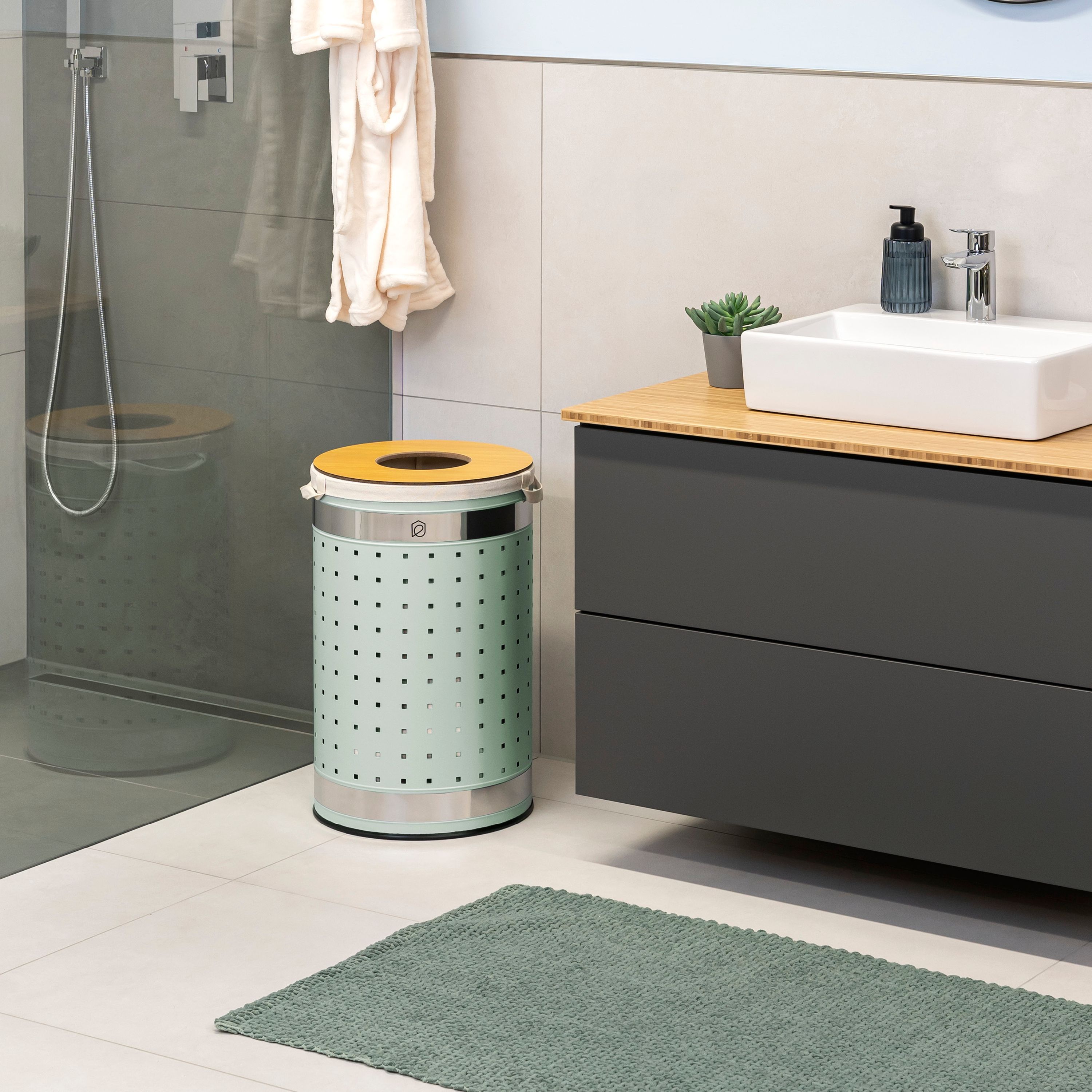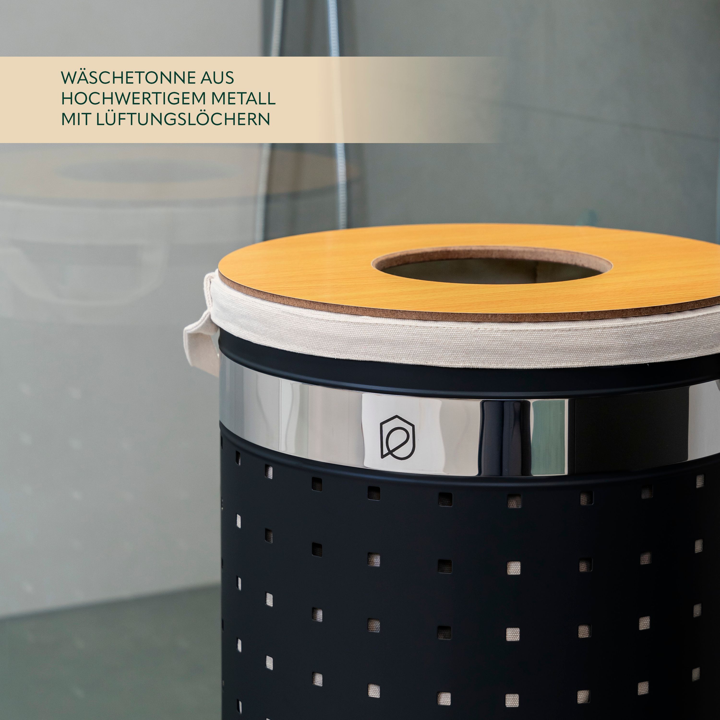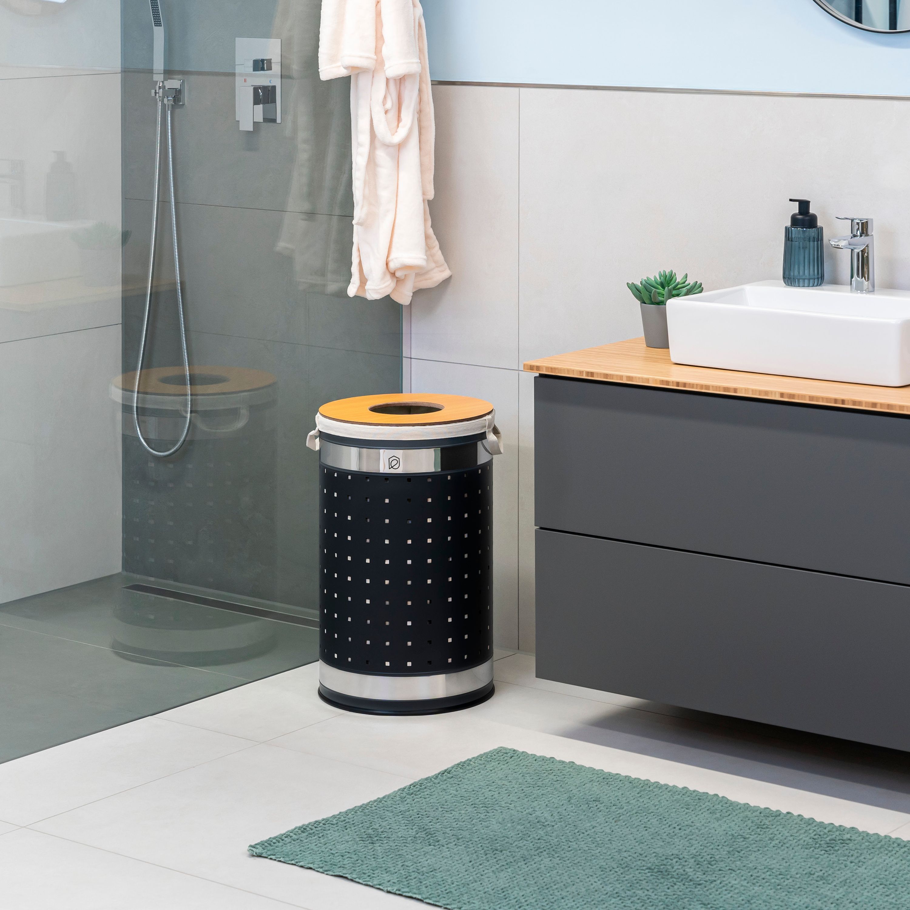 eluno Wäschetonne mit Deckel und Wäschesack rund 50L, aus Metall