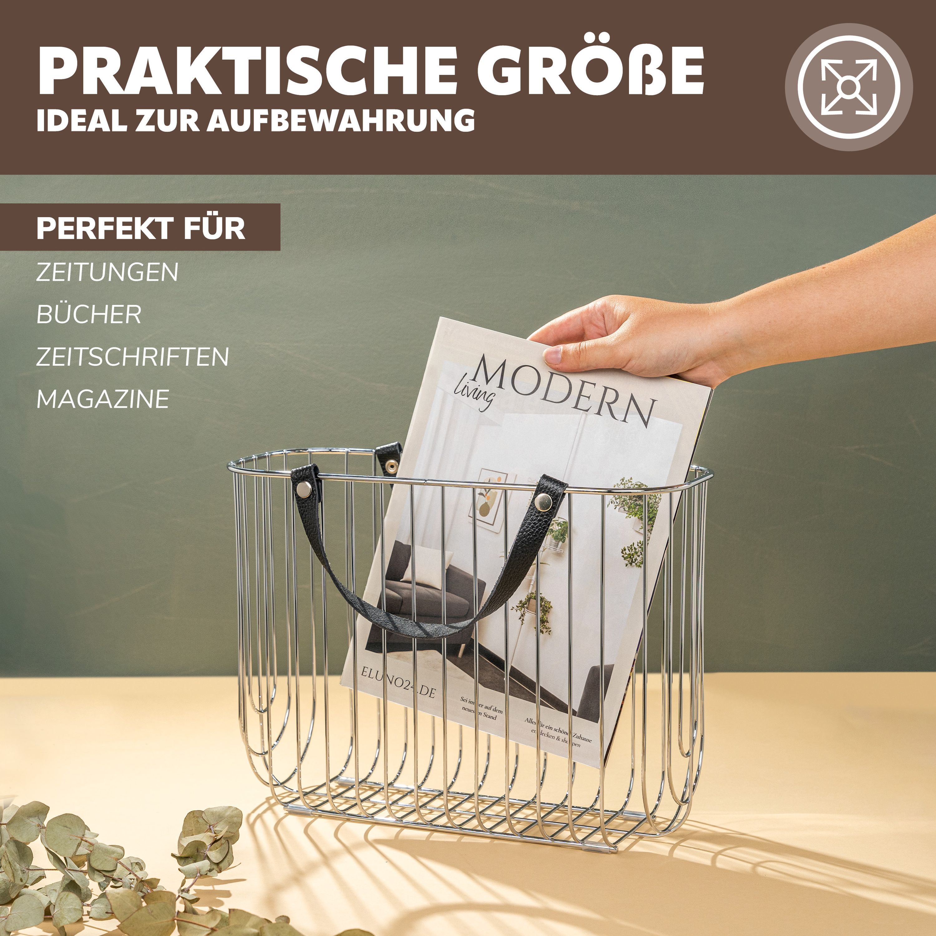 eluno Zeitungsständer aus Metall mit Tragegriffen, ca. 36 x 26,5 x 15,5 (B/H/T)