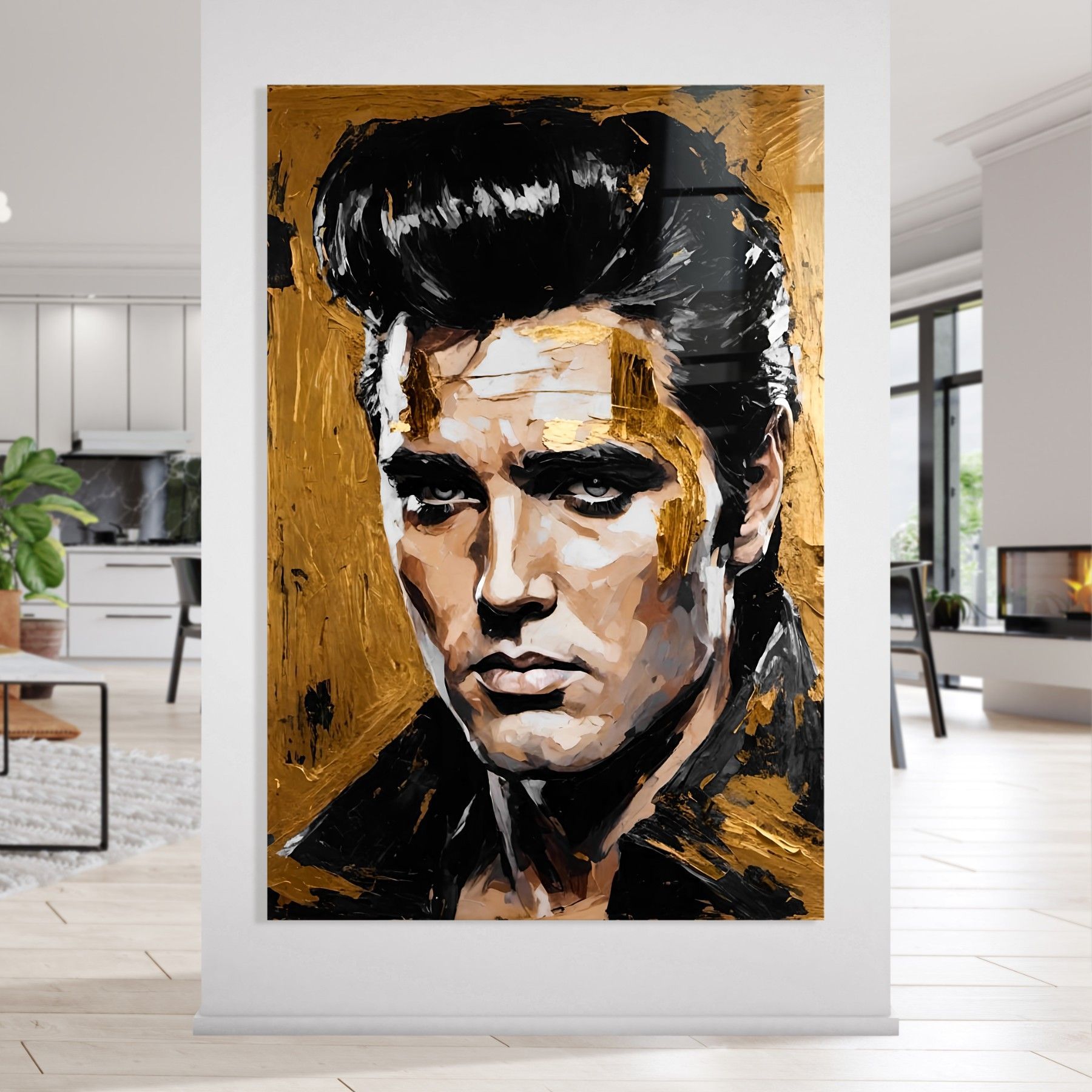 Elvis Presley, Sänger Gold Kunst Bild, Wandbild Leinwand, Acrylglas oder Poster
