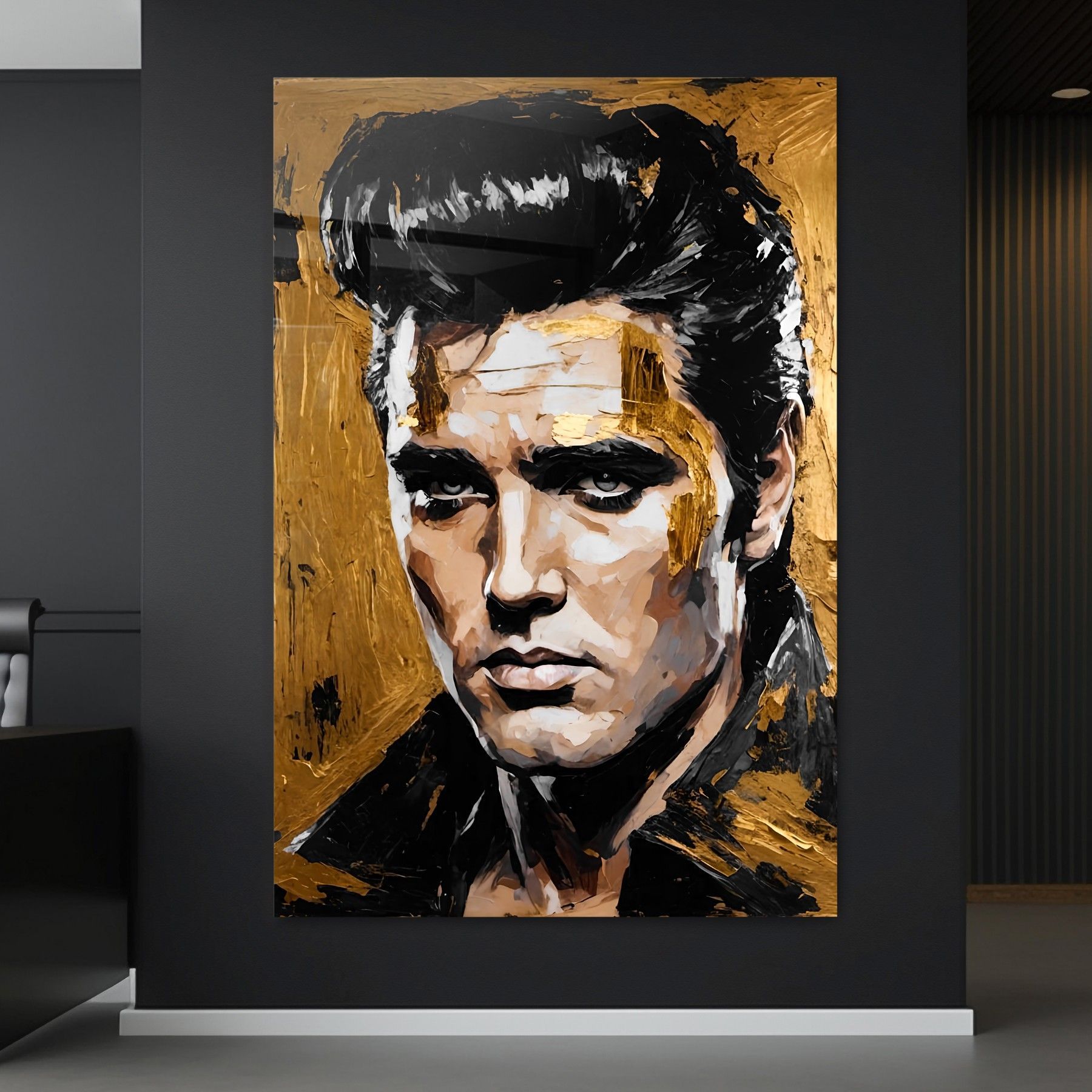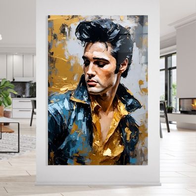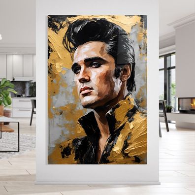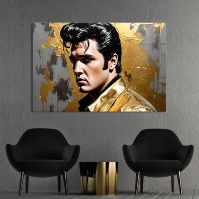 Elvis Presley, Sänger Gold Kunst Bild, Wandbild Leinwand, Acrylglas oder Poster 16p28