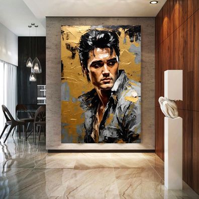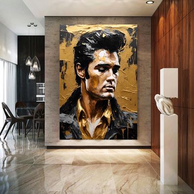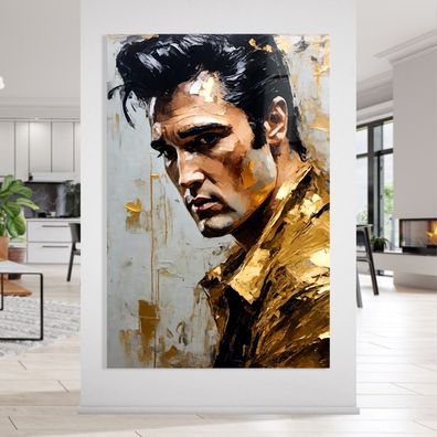 Leinwand-Bild mit Rahmen XXL , Golden Elvis Presley pop musik , Home Deko