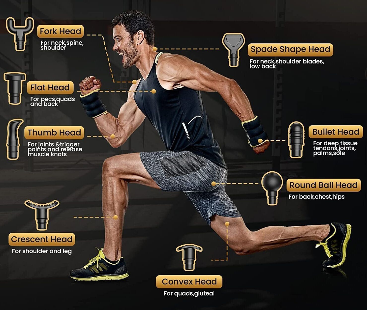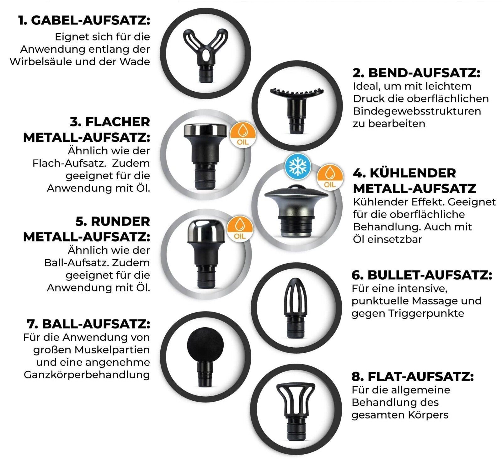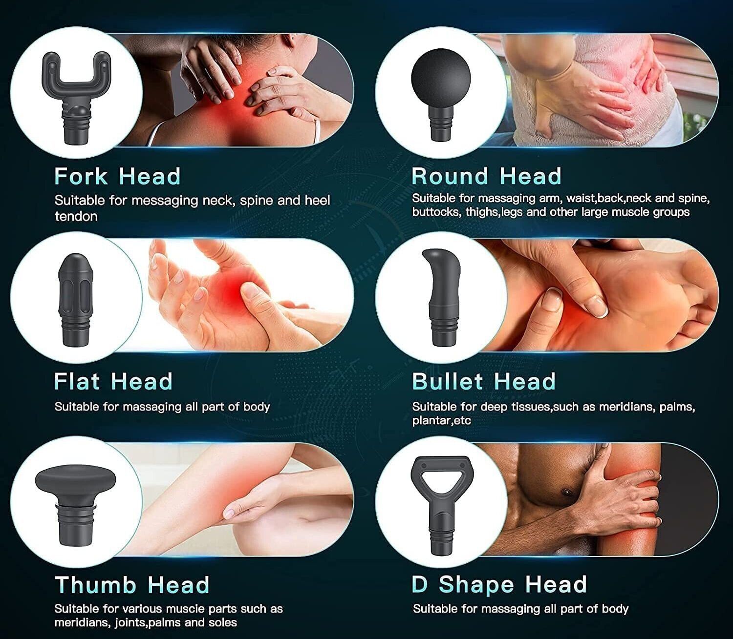 EM03 6x Ersatz Massagepistole Aufsätzen Kell Kugel Gabel Hammer Kopf Ø 18x 20mm