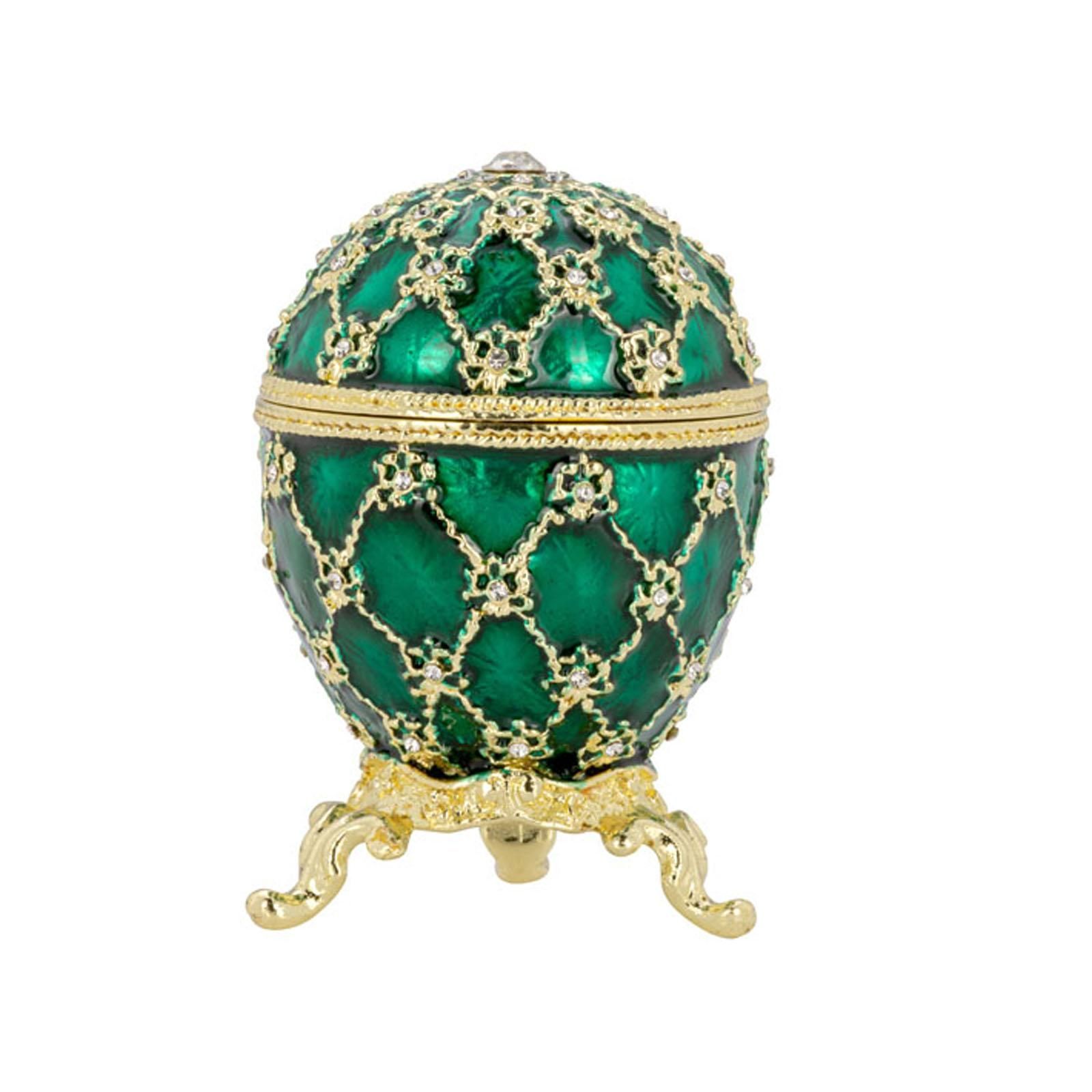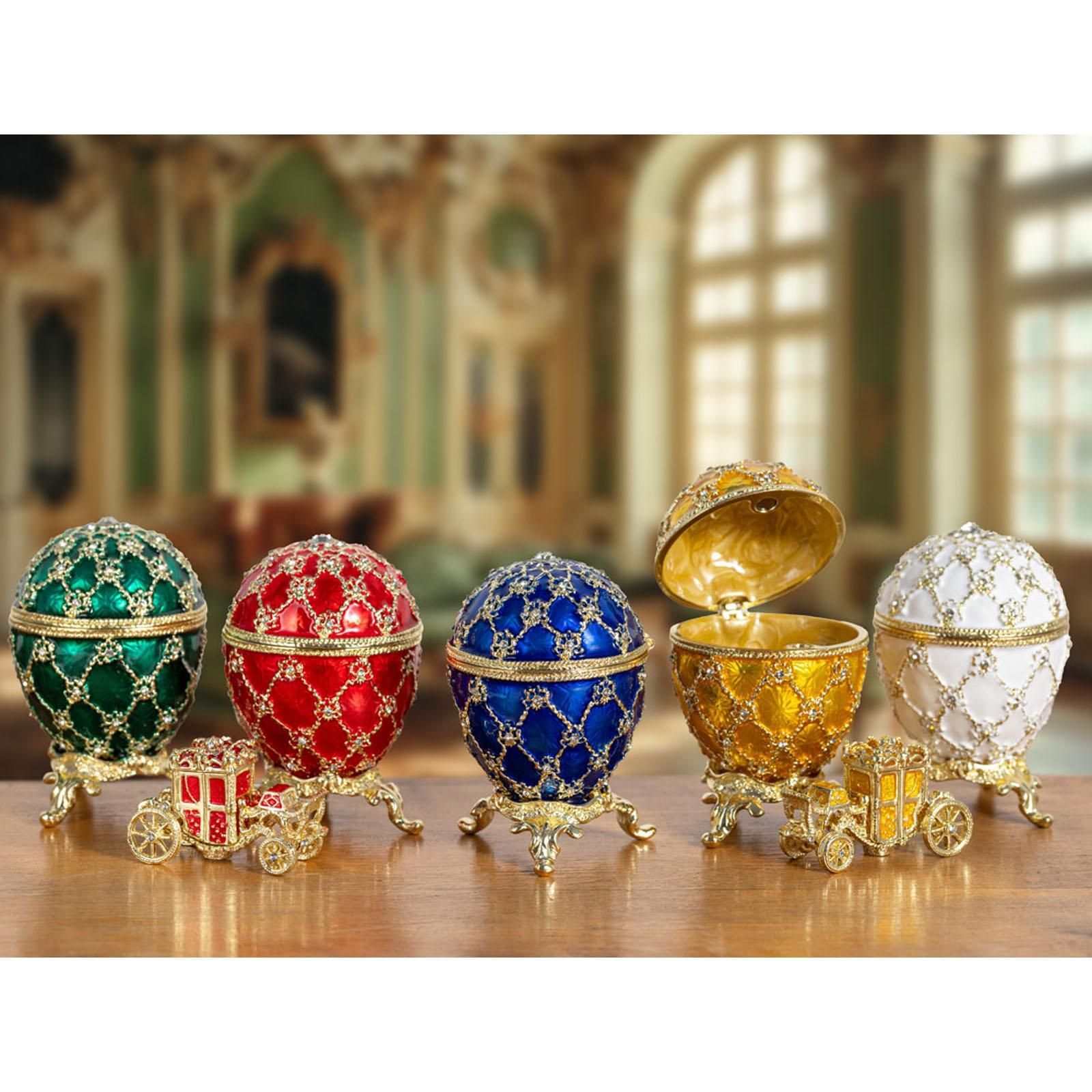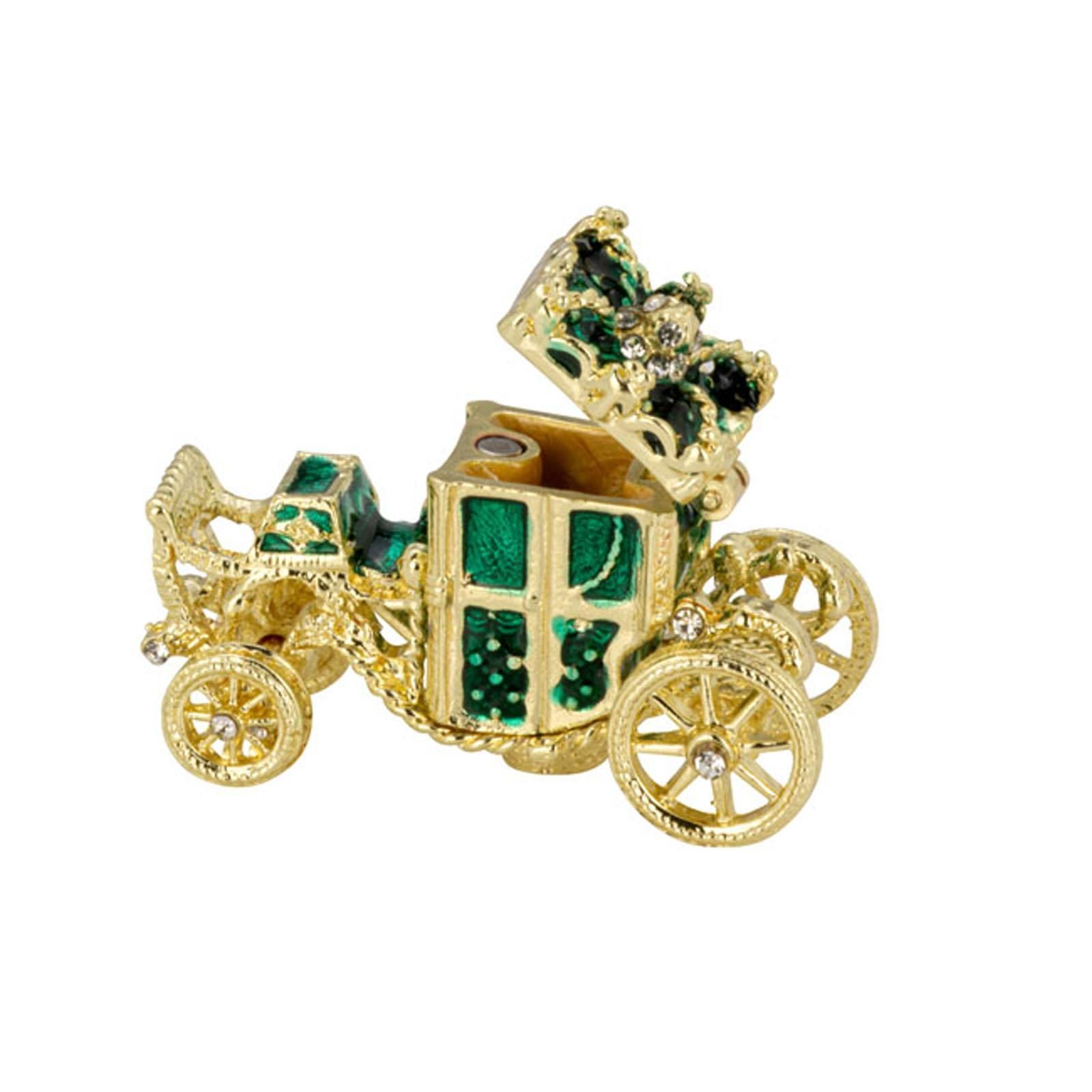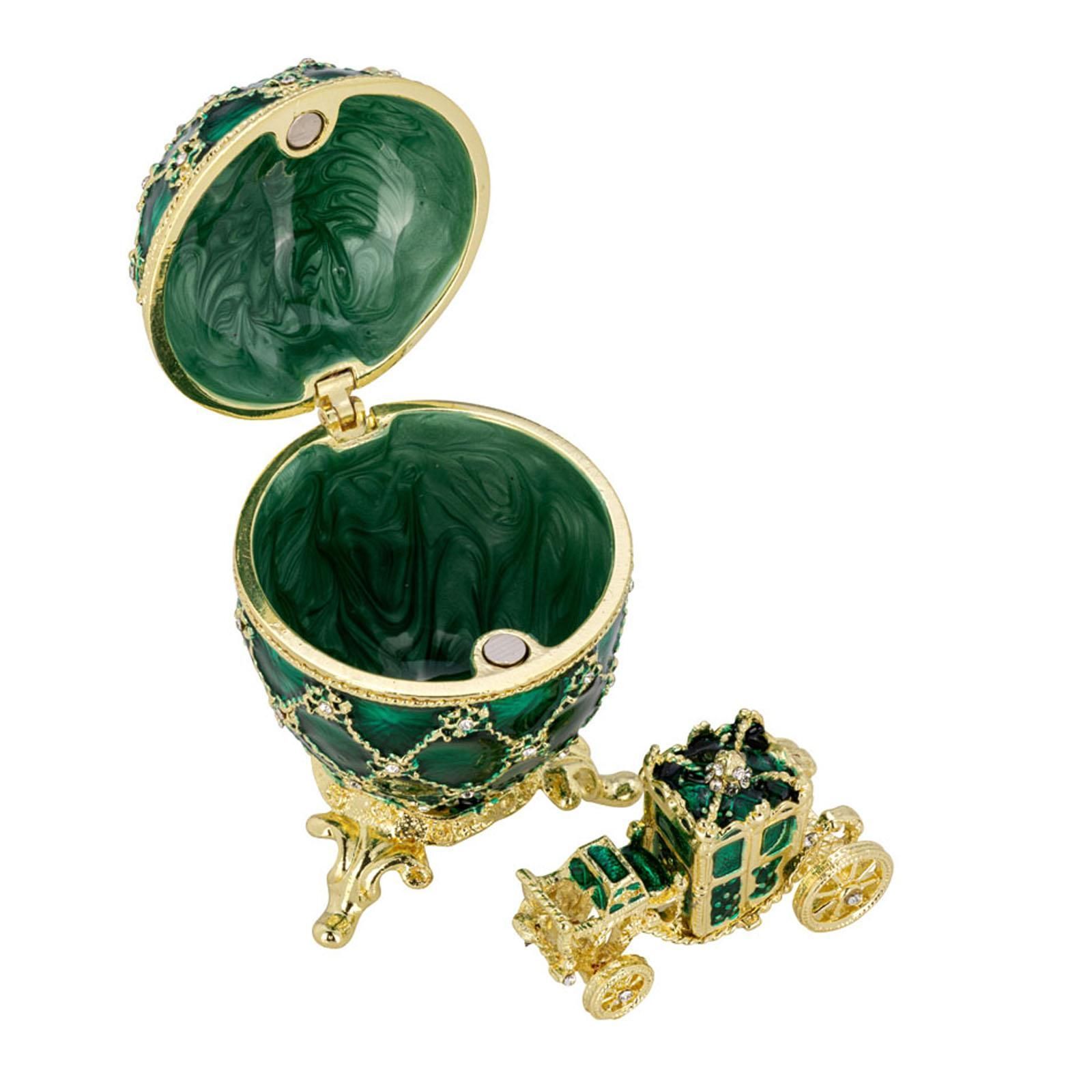 Emaille Eidose 7 x Ø 4,8 cm grün aufklappbares Schmuckei mit Mini Kutsche innen