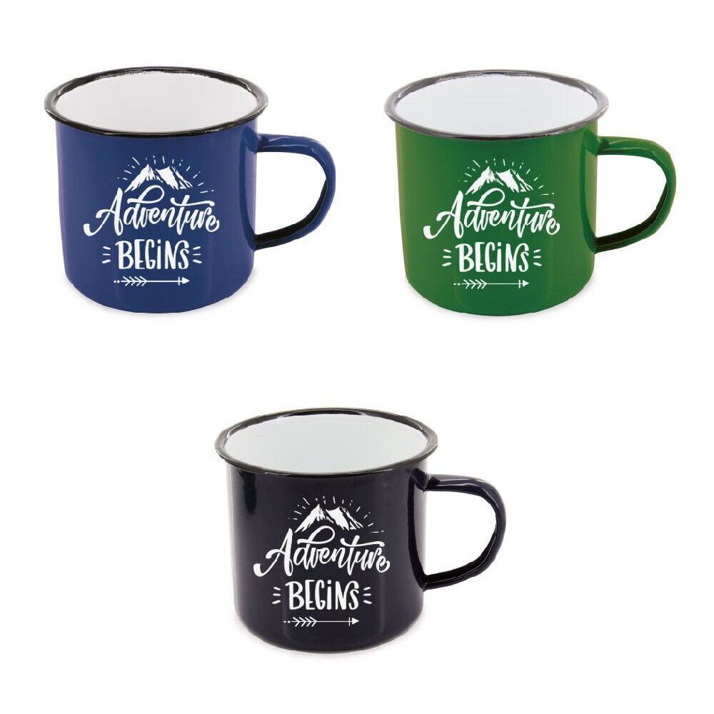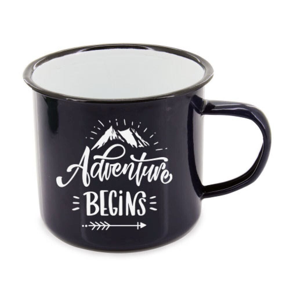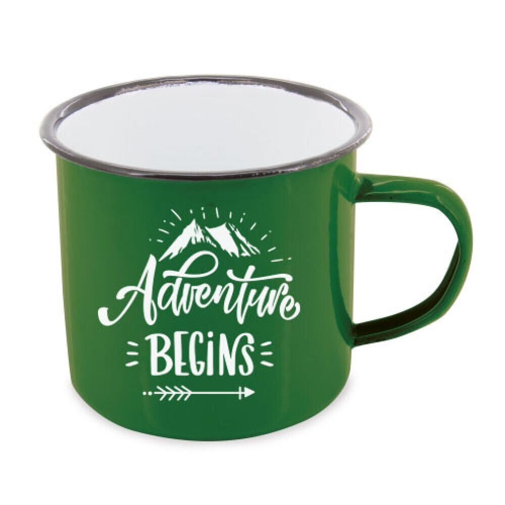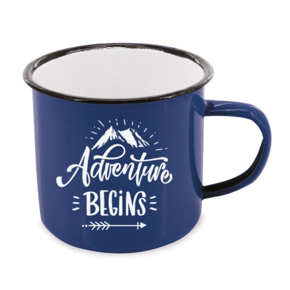 Emaillebecher Camping 500 ML - The Adventure begins - schwarz grün oder blau