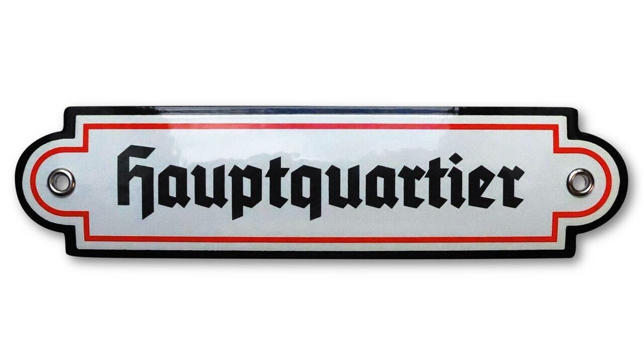 Emailleschild / Türschild - Hauptquartier Emailschild 5 x 20 cm NEU!