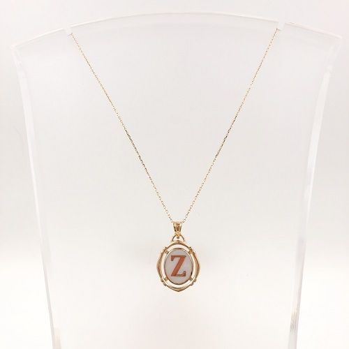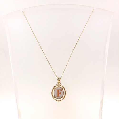 Emaillierte Buchstaben Anhänger mit Ankerkette aus 14 kt Gold