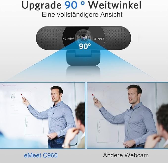 EMEET C960 Full HD Webcam 1080P mit Objektivabdeckung, Mikrofon, 90° Sicht
