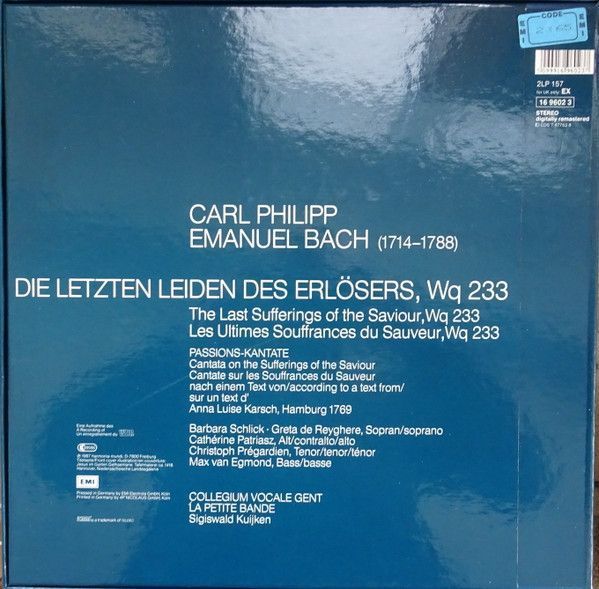 EMI 16 9602 3 - Carl Philipp Emanuel Bach, Sigiswald Kuijken - Die Letzten Leide