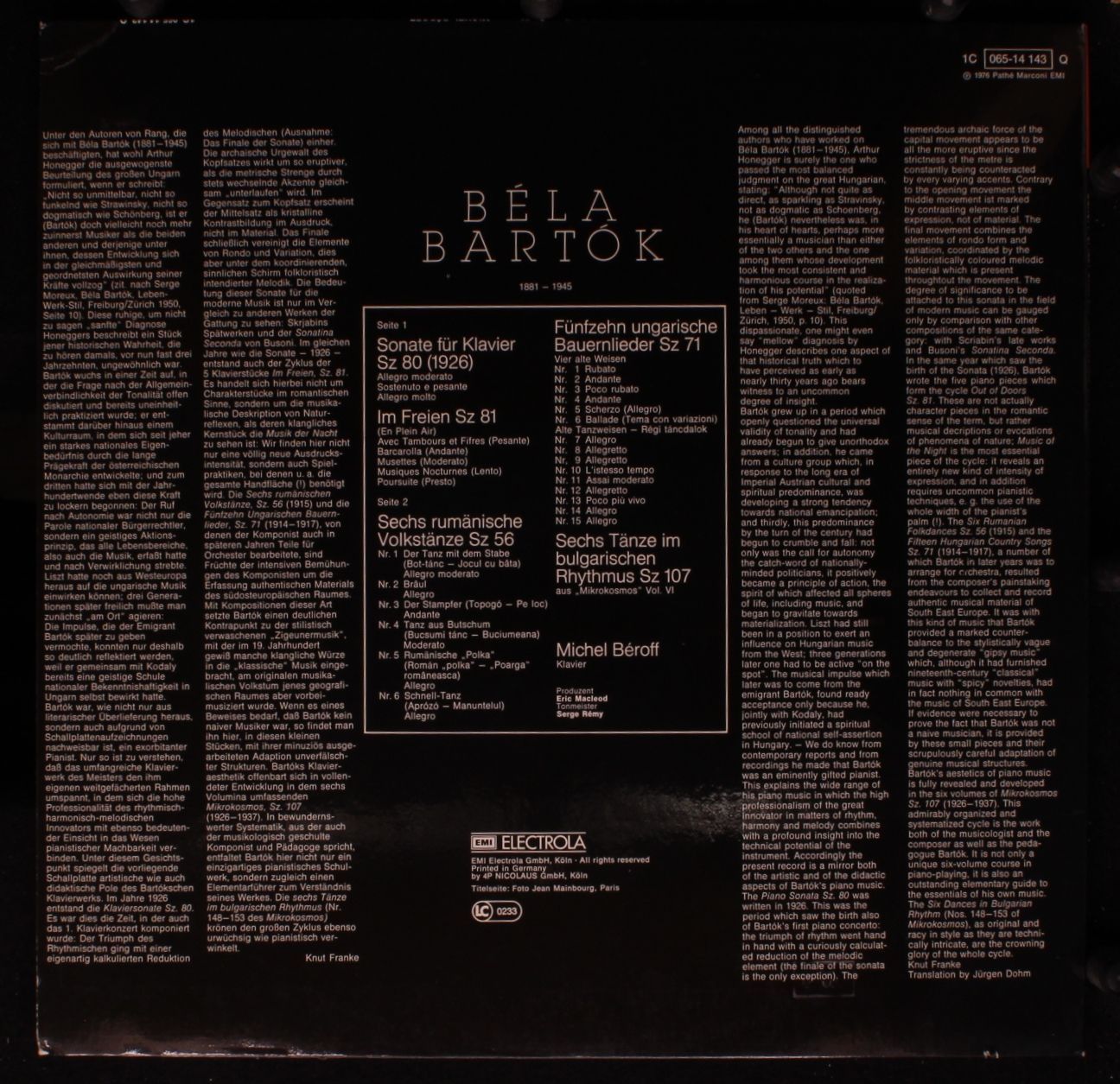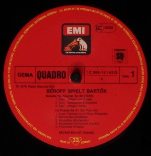 EMI 1C 065-14 143 Q - Michel Béroff, Béla Bartók - Béroff Spielt Bartók