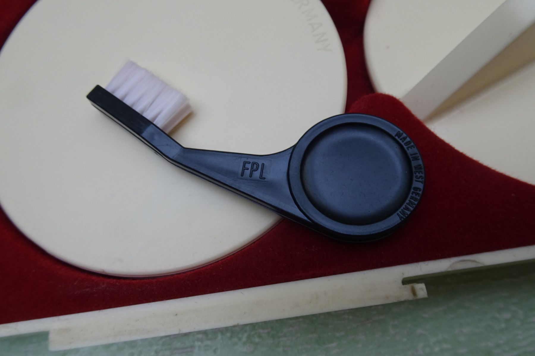 EMI electrola Schallplattenpflege Reinigungs- und Pflegeset Bürste Greifer Pinsel