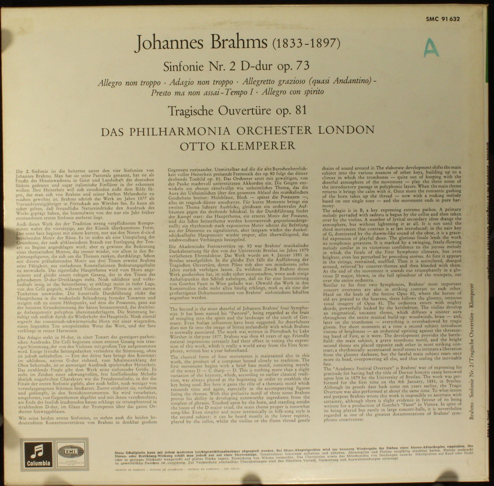 Condition Vinyl Very Good Plus (VG+) Condition Sleeve Very Good Plus (VG+) Tracks included: 1. Sinfonie Nr. 2 D-Dur Op. 73 2. Tragische Ouvertüre Op. 81