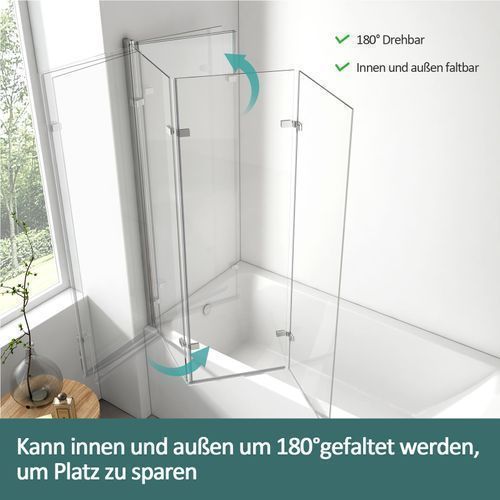EMKE 120x140cm Badewanne Duschwand 3-teilig faltbar mit NANO Badewannenwand