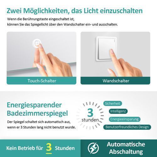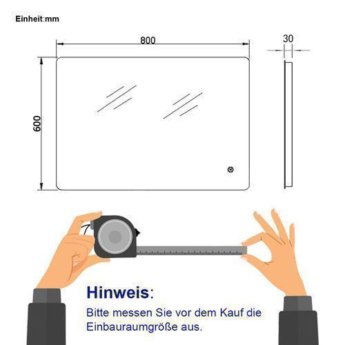 EMKE Badezimmerspiegel mit Beleuchtung LED Badspiegel 80x60cm Kaltweißes Touch