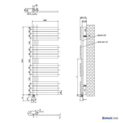 EMKE Badheizkörper Elektrisch Flachrohr 104x40cm Weiß 400W