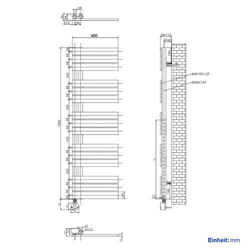 EMKE Badheizkörper Elektrisch Flachrohr 132x40cm Weiß 600W