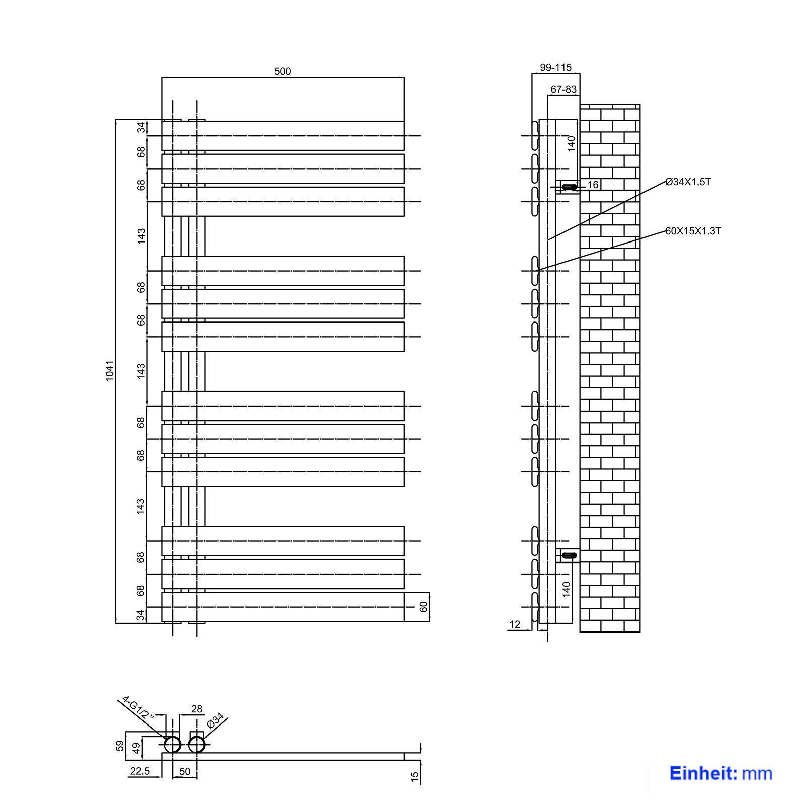 EMKE® Badheizkörper Elektrisch Mit Thermostat Bad Heizkörper Handtuchtrockner