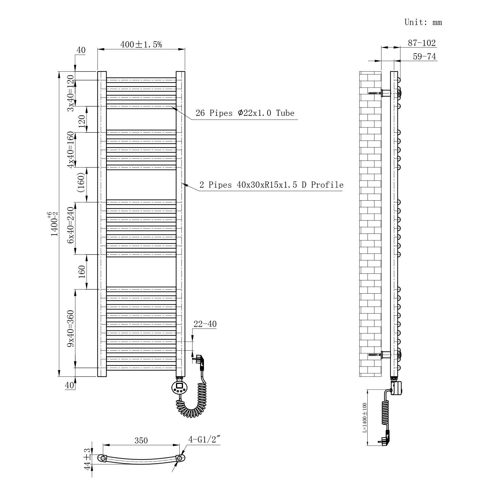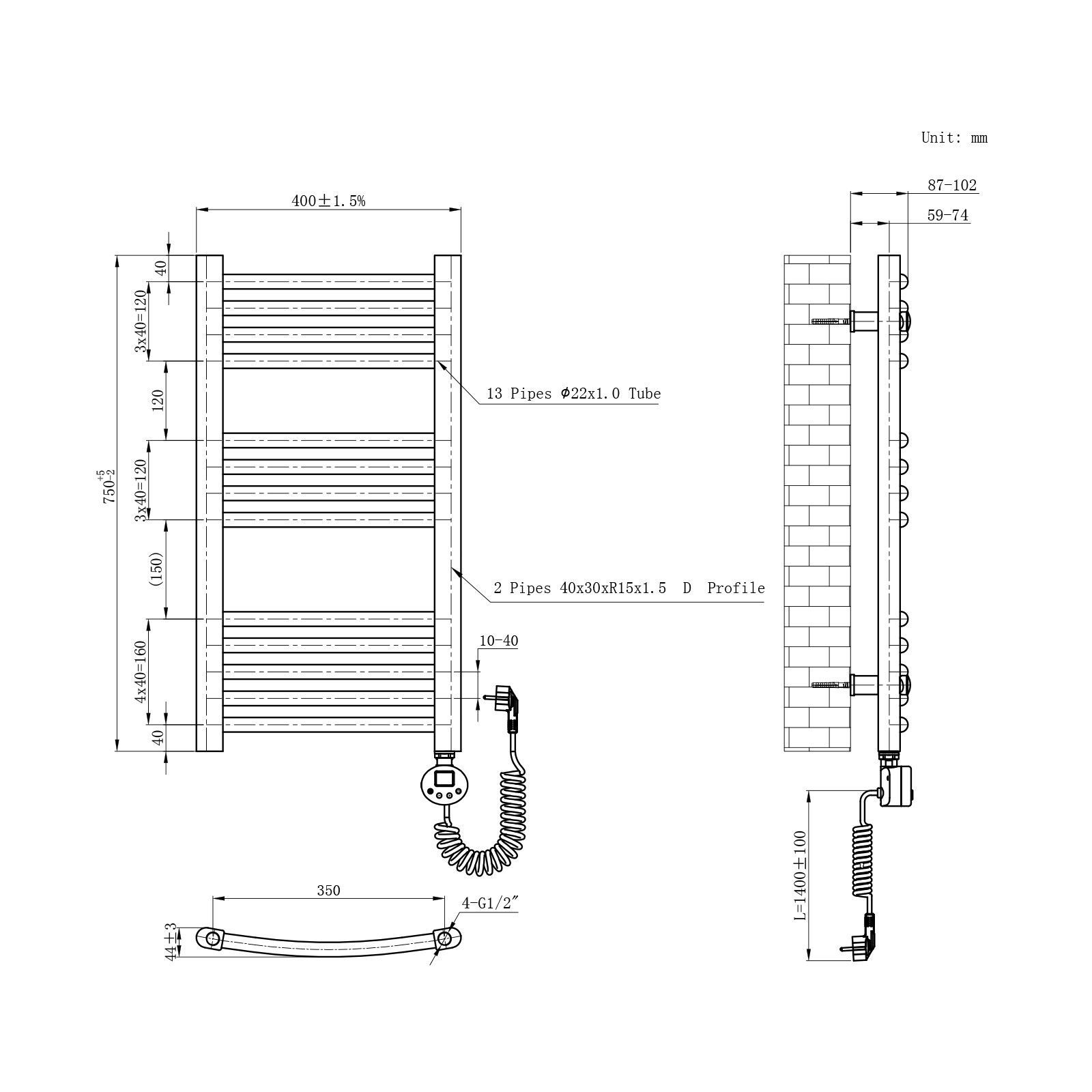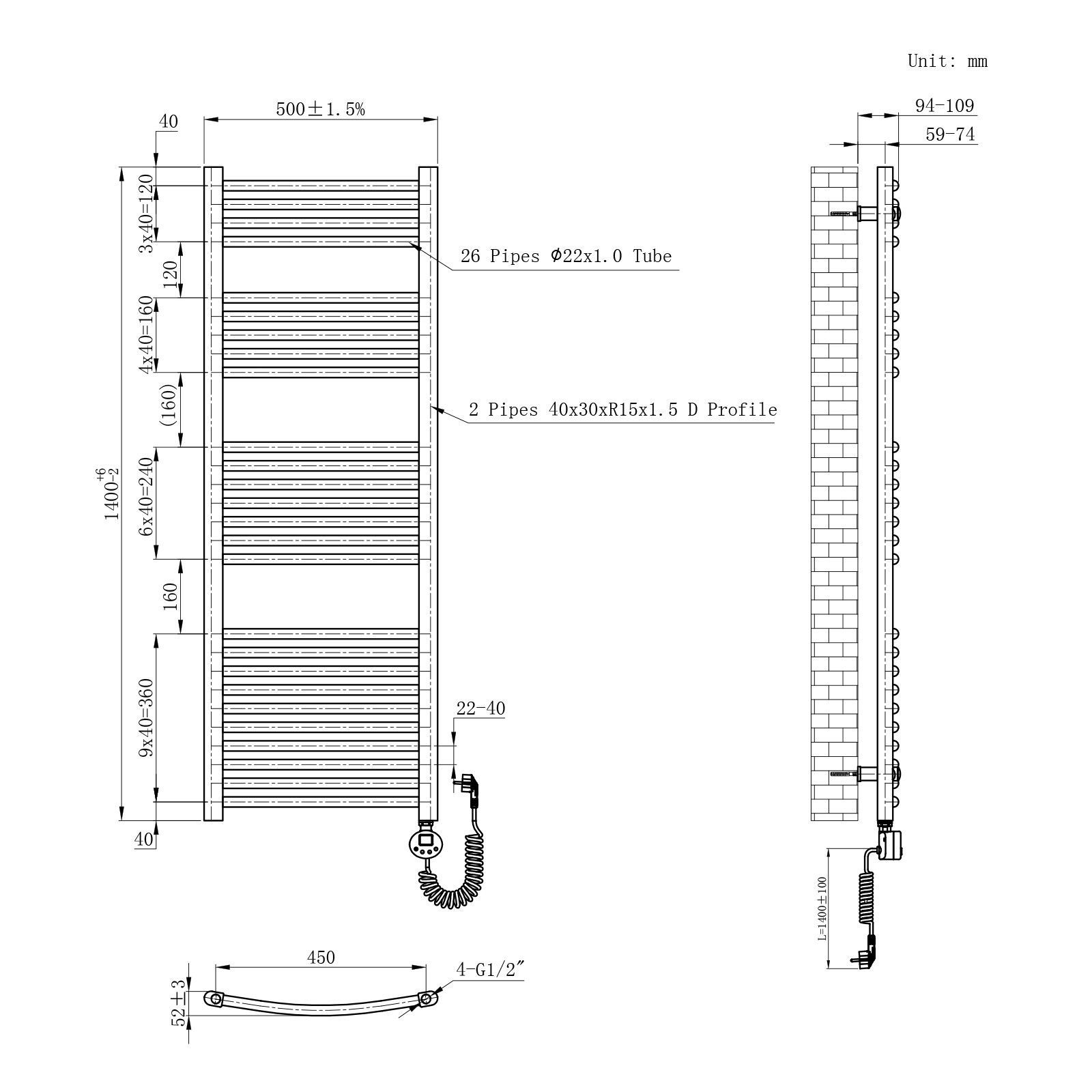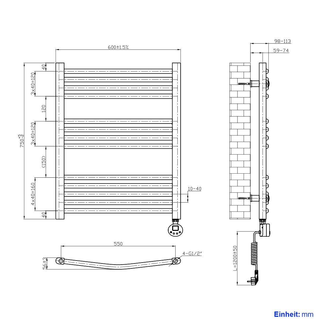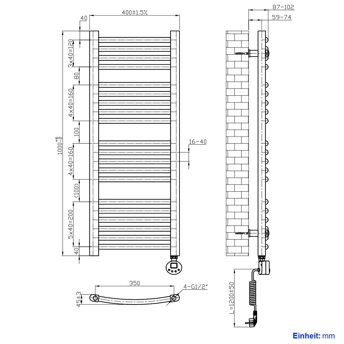 EMKE® Badheizkörper Elektrisch Mit Thermostat Elektro Handtuchwärmer Handtuchtrockner