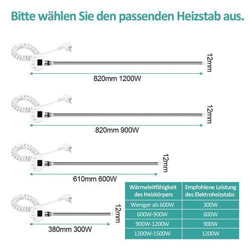 EMKE® Badheizkörper Elektro Heizstab 300W-1200W Heizpatrone Mit Temperaturregelung