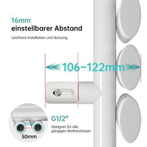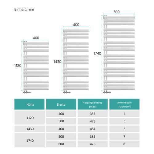 EMKE Badheizkörper Elliptische Röhre Handtuchwärmer 174x50cm Weiß