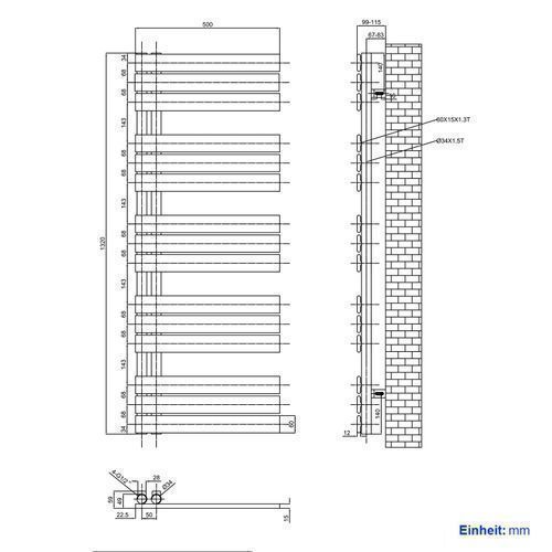 EMKE Badheizkörper Flachrohr Handtuchwärmer 132x50cm Weiß