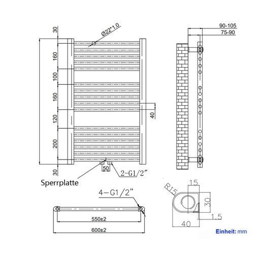 EMKE Badheizkörper Rundrohr Handtuchhalter 75x60cm Anthrazit