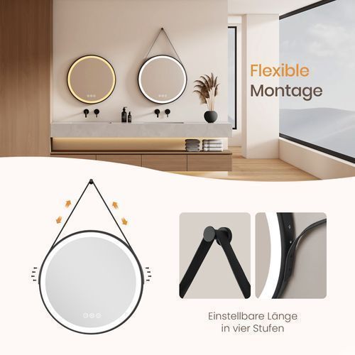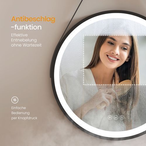 EMKE Badspiegel Mit Beleuchtung Vodar Rund 50cm