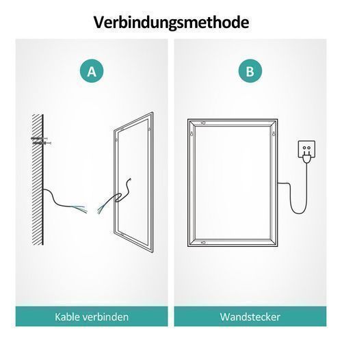 Duschwanne LED Spiegel Badheizkörper Heizkörper 2 Modell Badspiegel mit LED Beleuchtung Abmessung des Spiegels Breite x Höhe Die Dicke der Glasfläche: 5mm Die Dicke des Spiegels: 35mm Polierte und geschliffene Ränder Kupferfreie Oberfläche, bessere Reflektion Die Zahl der LED- Dioden pro 1 Meter: 12