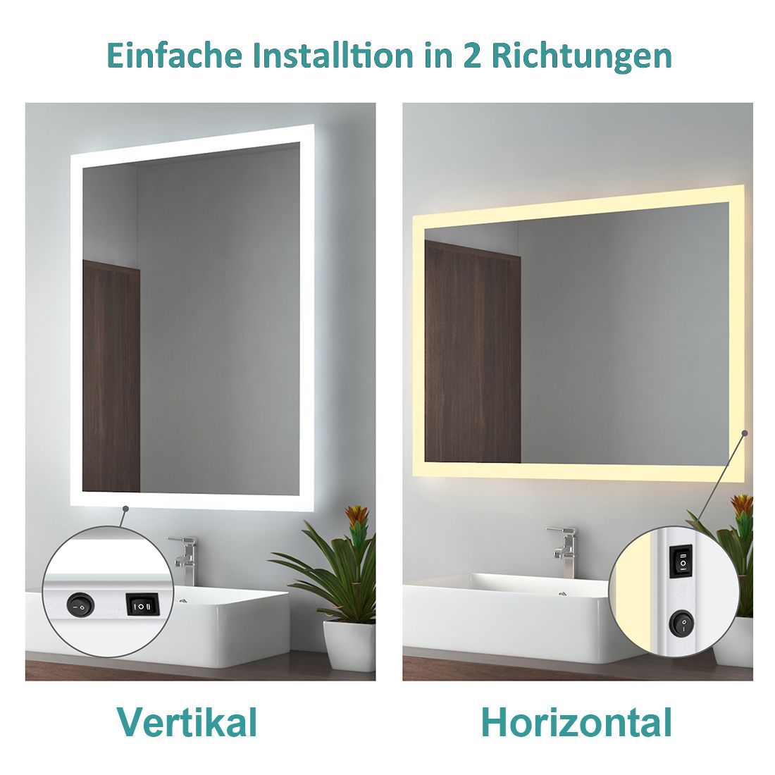 EMKE Badspiegel mit LED Beleuchtung Wandspiegel Badezimmerspiegel mit/ ohne Touch