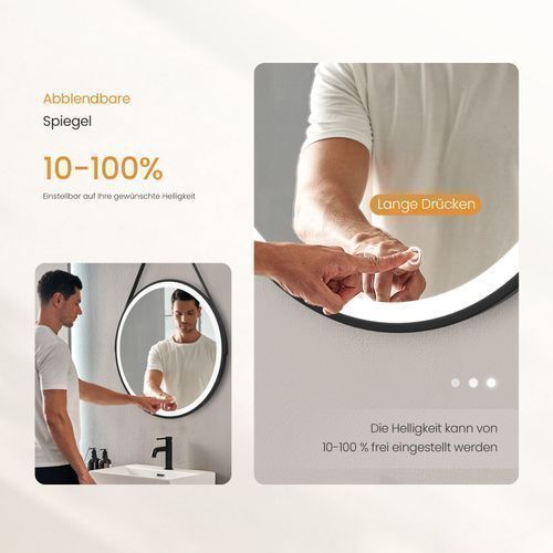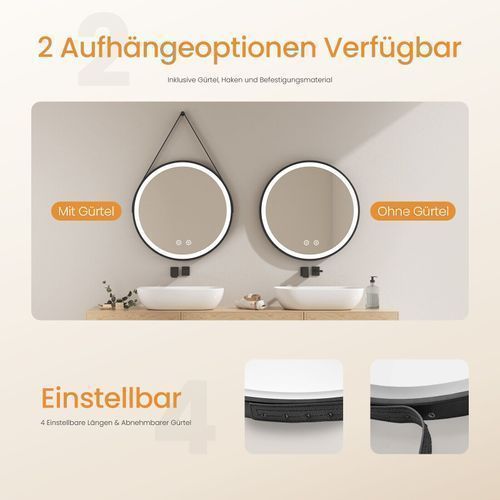 EMKE® Badspiegel Rund Mit LED Beleuchtung Touch Wandspiegel Dimmbar Beschlagfrei