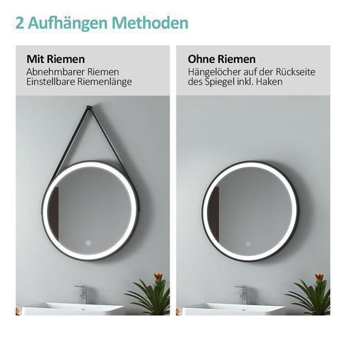 EMKE Badspiegel Rund Mit LED Beleuchtung Touch Wandspiegel Spiegel Ø50/60/70/80 cm