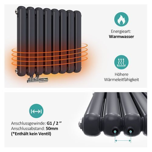 EMKE Design Heizkörper Röhrenheizkörper Horizontal Doppellagig Seitenanschluss