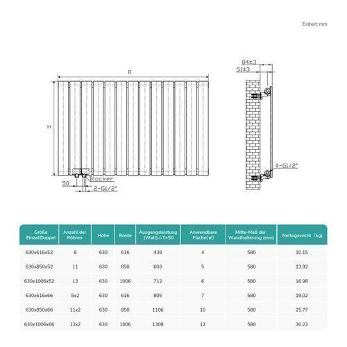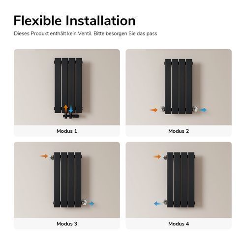 EMKE Designheizkörper Einlagig Vertikal 60x30cm Schwarz 233W