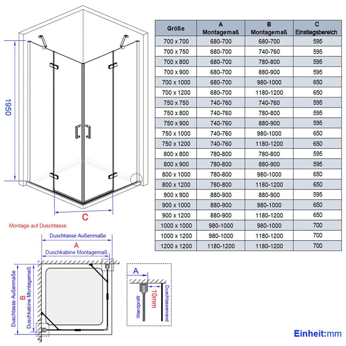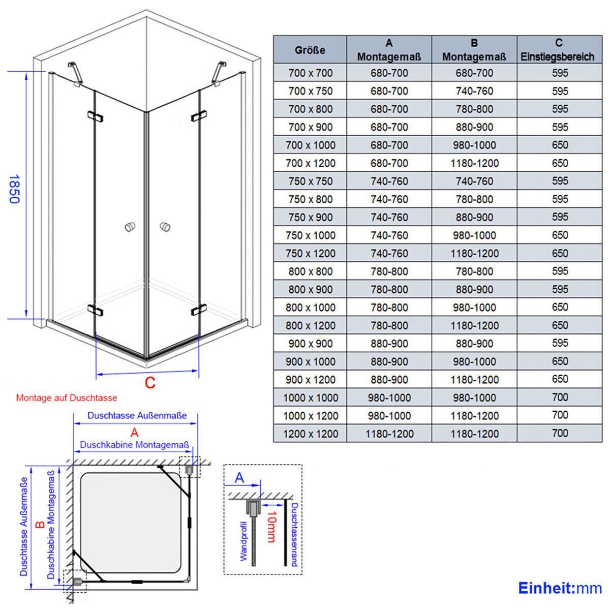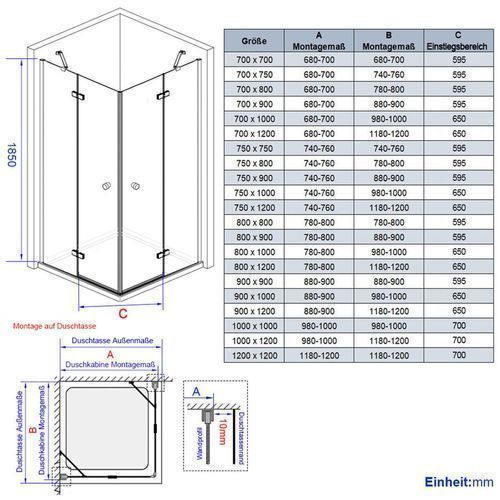 Duschwanne LED Spiegel Badheizkörper Heizkörper Größe: 750x750(Einstellbar:740-760x740-760) mm 800x800(Einstellbar:780-800x780-800) mm 900x900(Einstellbar:880-900x880-900) mm 1000x1000(Einstellbar:980-1000x980-1000) mm 1200x1200(Einstellbar:1180-1200x1180-1200) mm Höhe: 185 195 cm Form: Eckeinstieg