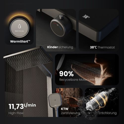 EMKE® Duschsystem Mit Thermostat Duschset Automatischer Abfluss von Kaltwasser