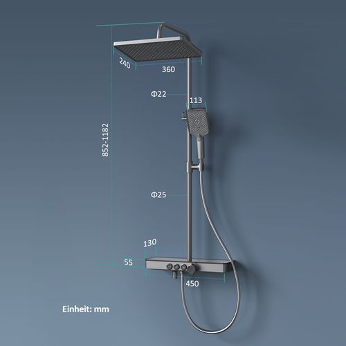 EMKE Duschsystem Mit Thermostat Gunmetal Grau Duscharmatur Duschset Kopfbrause Dusche