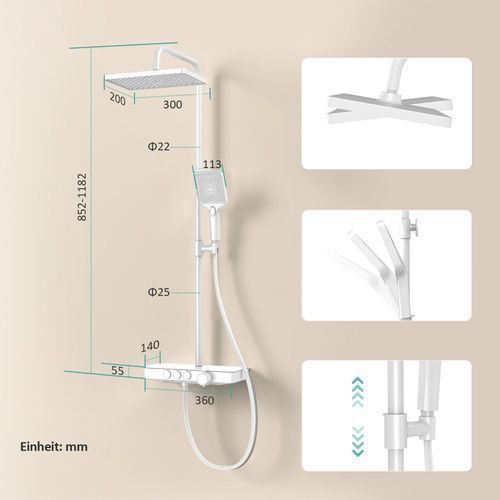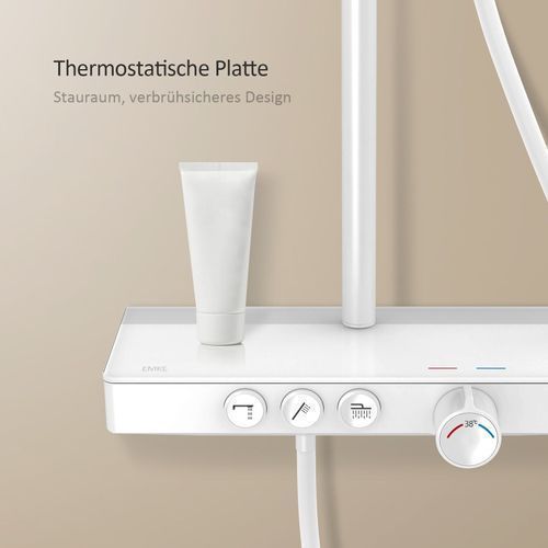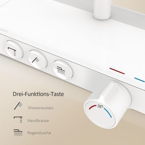 EMKE Duschsystem Mit Thermostat Regendusche Duscharmatur Duschset Weiß