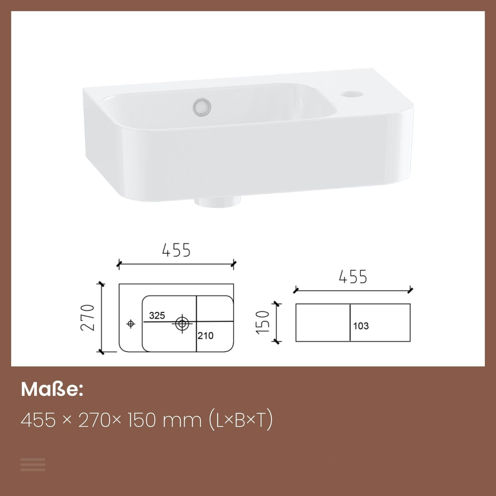 EMKE Keramik Waschbecken Wandmontage Waschtisch Hänge Bad Design Waschschale