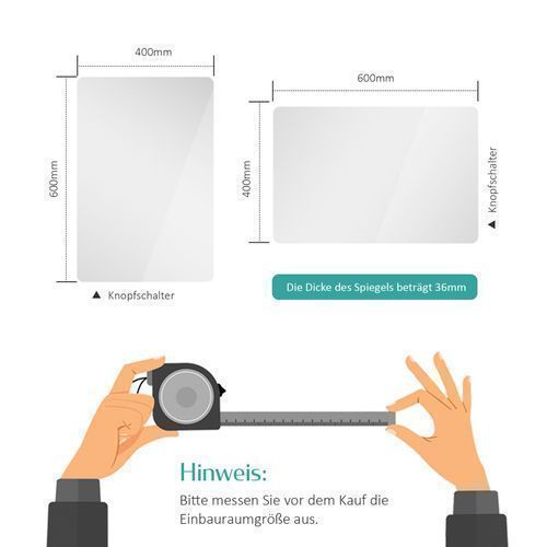 EMKE® LED Badspiegel 60x40cm Beschlagfrei Warmweiß Kaltweiß Wandspiegel Knopfschalter