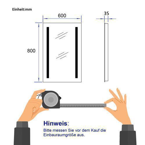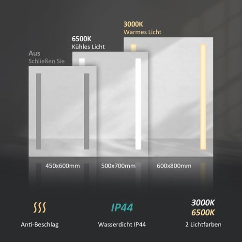 EMKE LED Badspiegel 60x80cm Wandspiegel Beschlagfrei Warmweiß Kaltweiß Tastenschalter