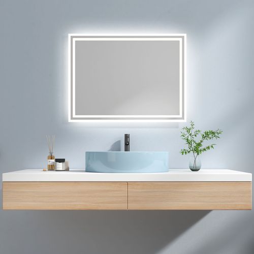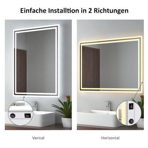 EMKE LED Badspiegel 60x80cm Wandspiegel Kaltweiß Warmweiß Beschlagfrei Tastenschalter