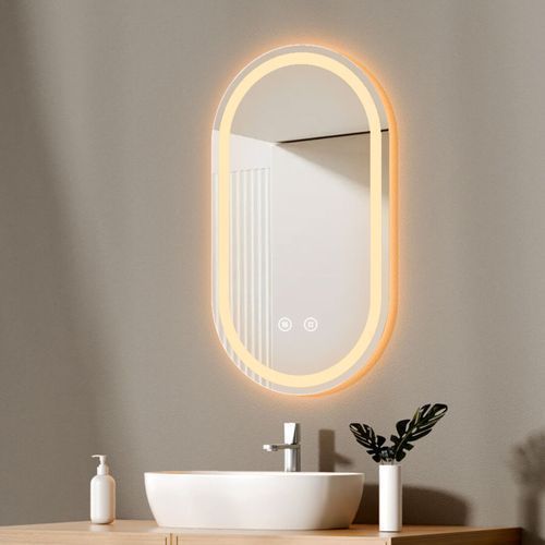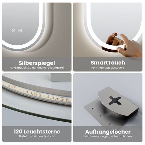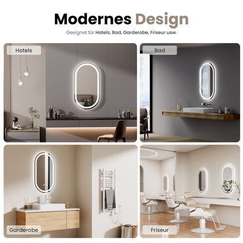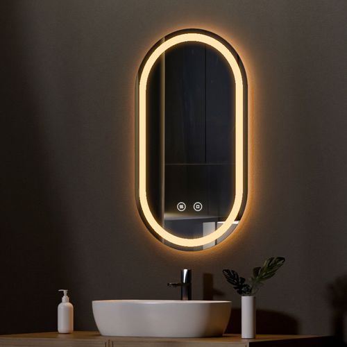 EMKE® LED Badspiegel Badezimmer Wandspiegel Oval Touch Spiegel Kaltweiß Warmweiß