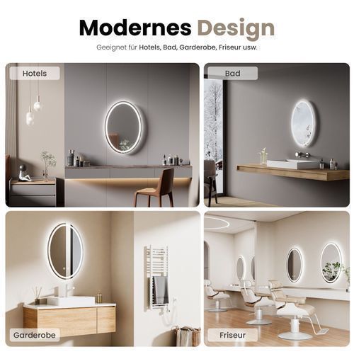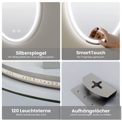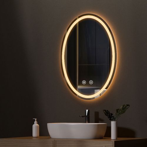 EMKE LED Badspiegel Elliptisch Wandspiegel Oval Rahmenlos Badezimmerspiegel Spiegel