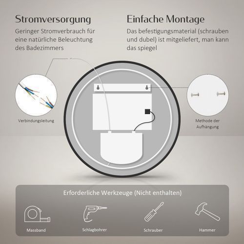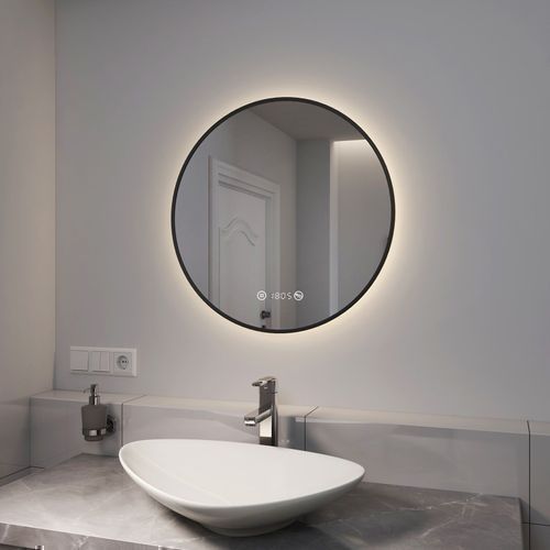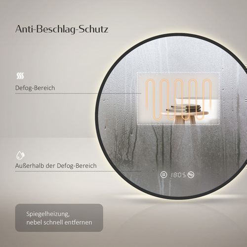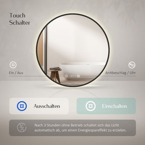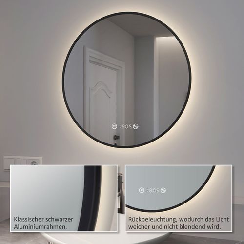 EMKE® LED Badspiegel Rund 60cm Mit Beschlagfrei Uhr Badezimmerspiegel Spiegel Bad