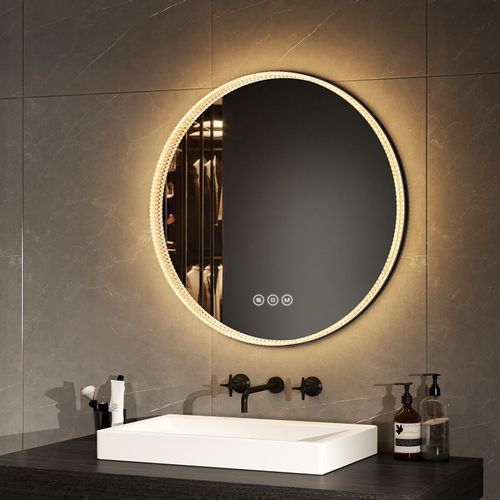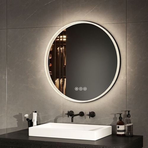 EMKE® LED Badspiegel Rund mit Beleuchtung Touch Beschlagfrei 3 Lichtfarbe Wandspiegel