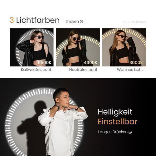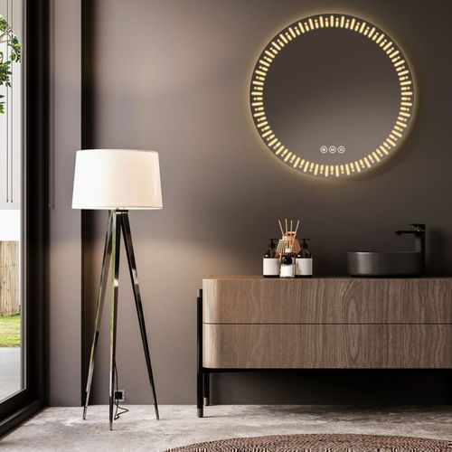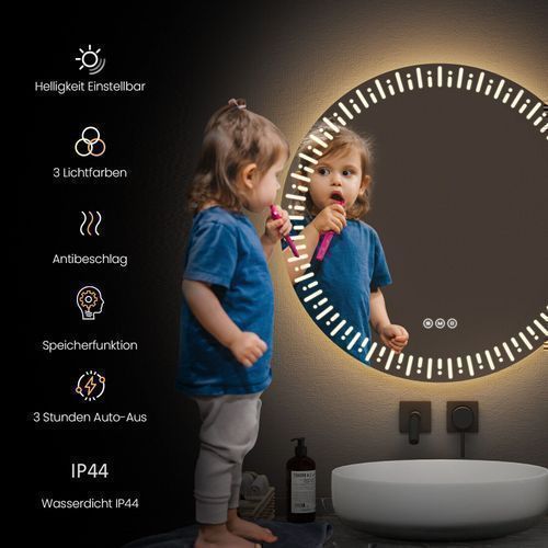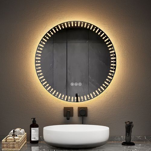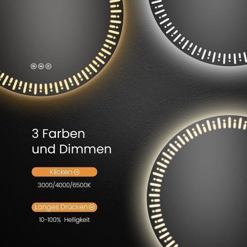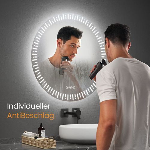 EMKE® LED Badspiegel Rund Mit Beleuchtung Touch Beschlagfrei Einstellbare Helligkeit