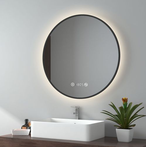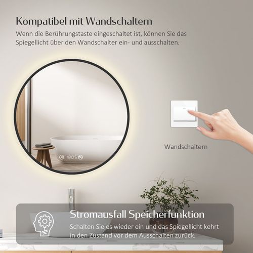 EMKE® LED Badspiegel Rund Touch mit Beleuchtung Beschlagfrei Schwarz Rahmen