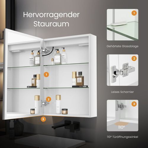 EMKE® LED Spiegelschrank Badschrank Mit Beleuchtung Badspiegel Touch Beschlagfrei