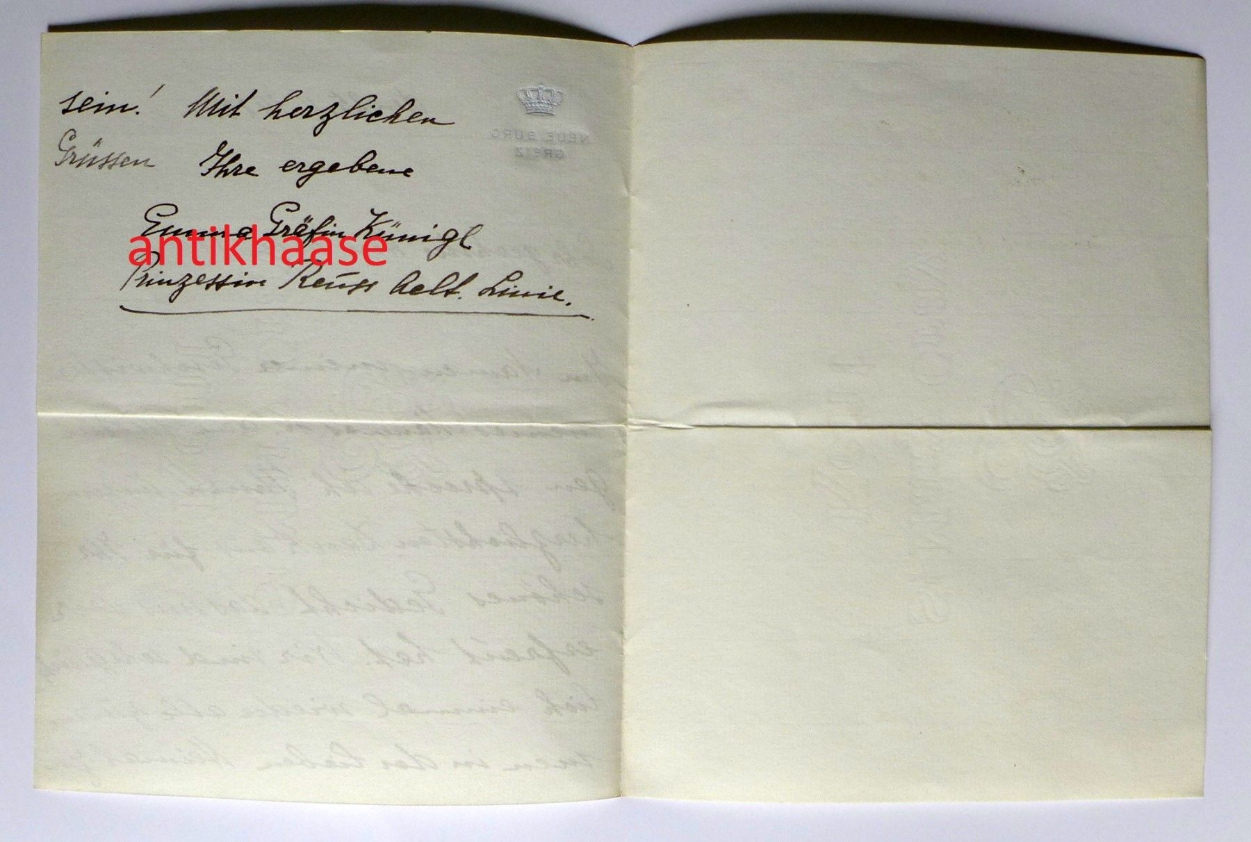 Emma Gräfin Künigl. Prinzessin Reuß ältere Linie an Redakteur F. Kellert Greiz