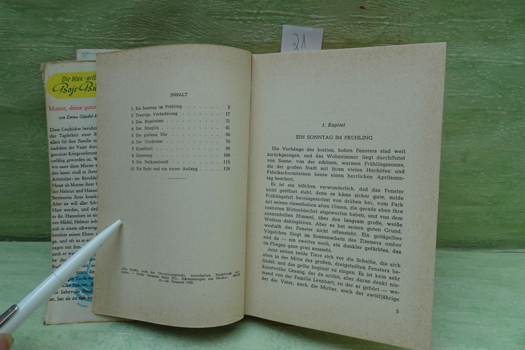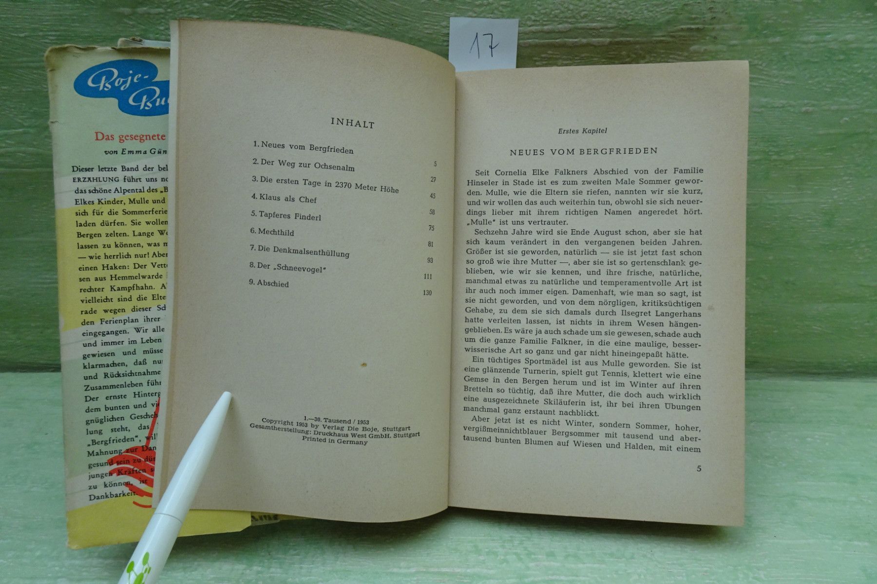 Jugend- & Kinderbücher ... Erinnerungen ..... Emma Gündel . alle Bücher Halbleinen und mit Fadenbindung . 17: Ein kleines Wort, das Wunder tat Boje Stuttgart 1. - 30. Tsd 1953 Halbleinen, Schutzumschlag , Fadenbindung mit Stempel aus einer Leihbücherei siehe Fotos . 19: Drei Sterne am Himmel Boj