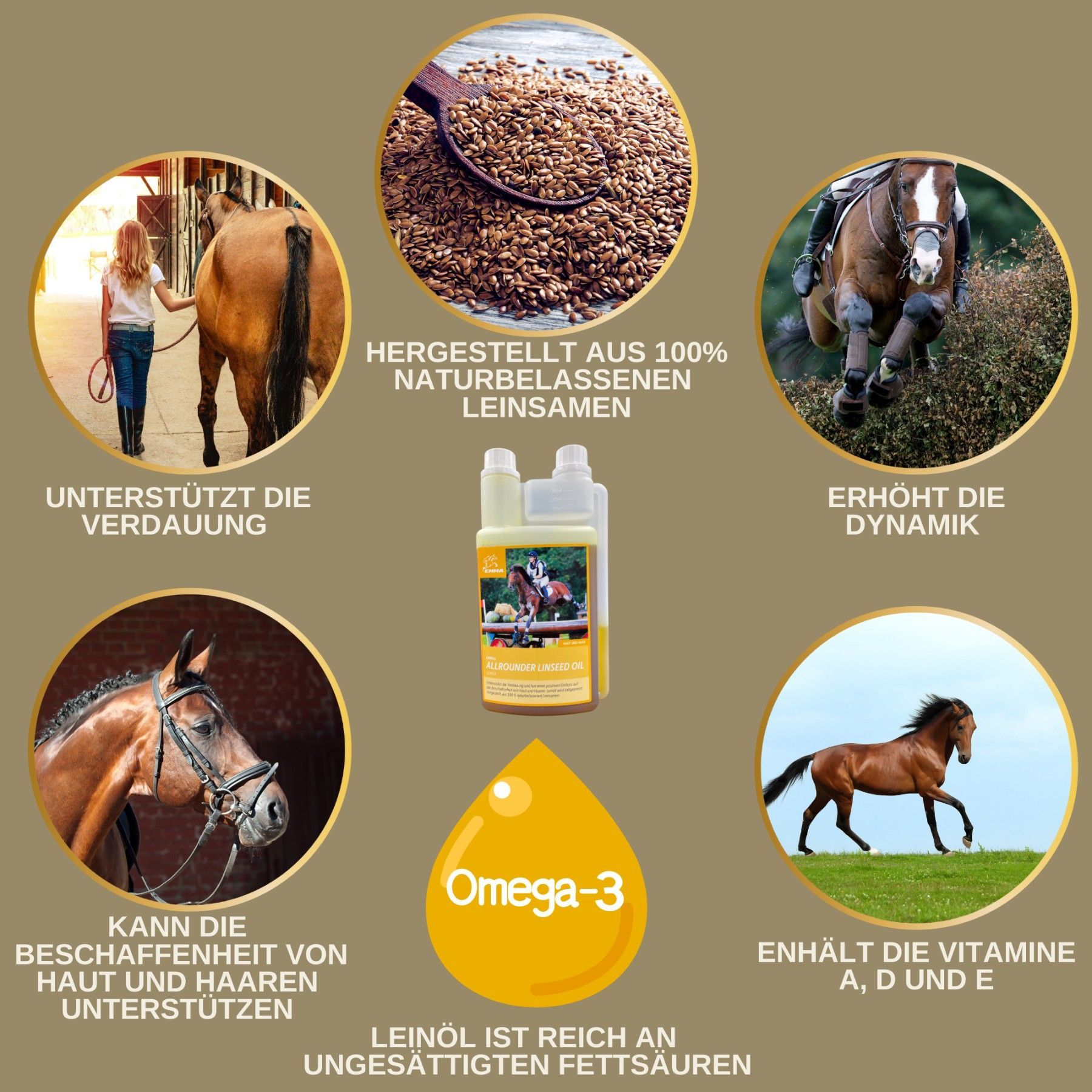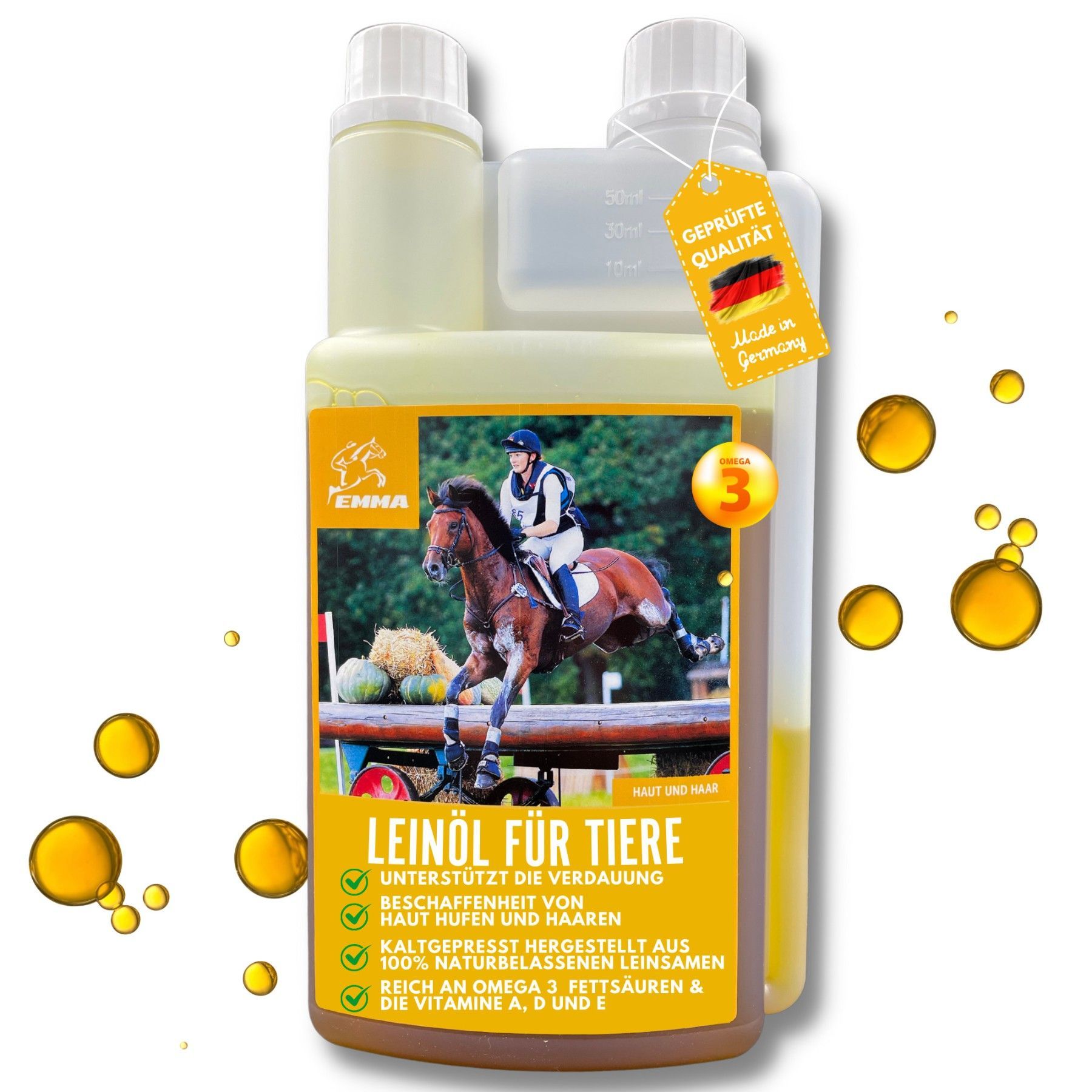 EMMA Leinöl fürs Pferd- Ergänzungsfutter für glänzendes Fell & gute Verdauung, 1 L